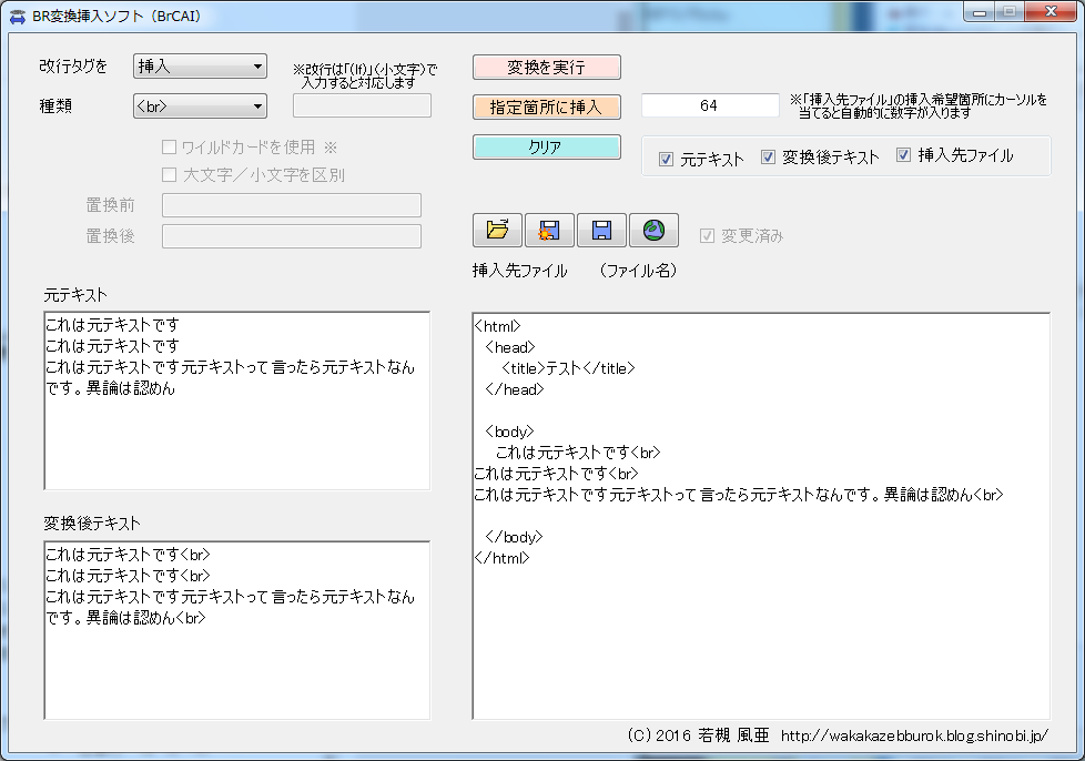 1.普通に打った文章に改行タグ(など)を挿入・除去等の