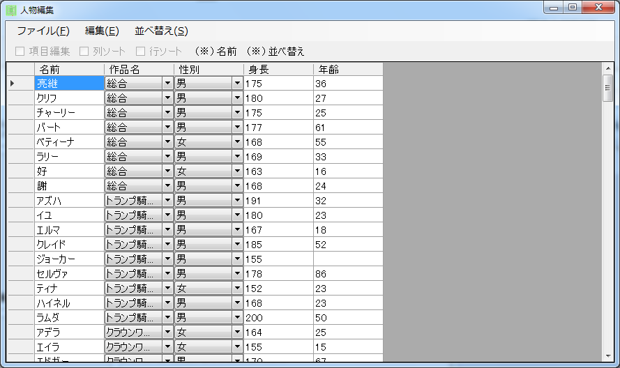 -5.項目の削除 = 選択項目を削除(名前と作品名は削除不可)