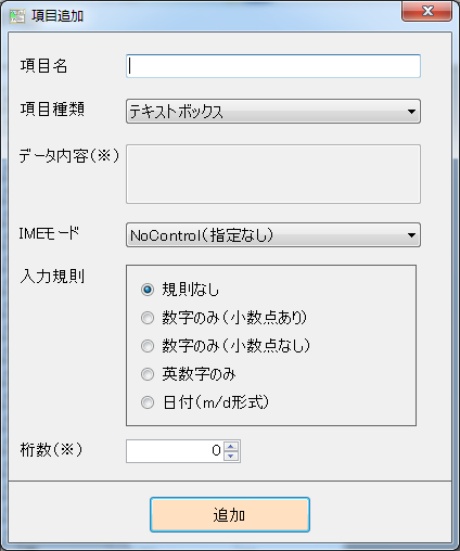 [6]桁数 = テキストの時だけ設定。設定なしは「ゼロ」