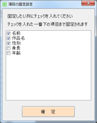 [1]固定したい列にチェック、固定したくない列のチェックは外す