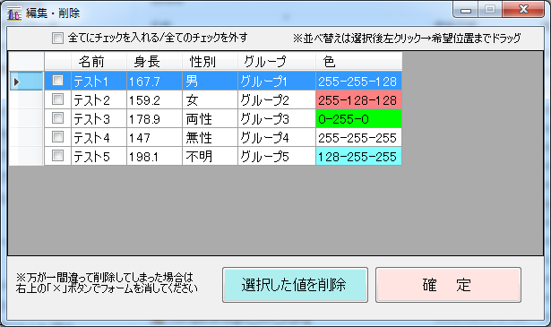 2-2.「選択した値を削除」ボタン押下