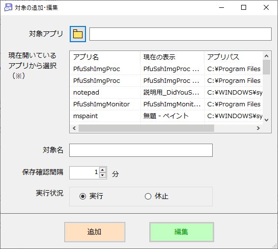 指定したアプリの保存を指定時間ごとに確認する