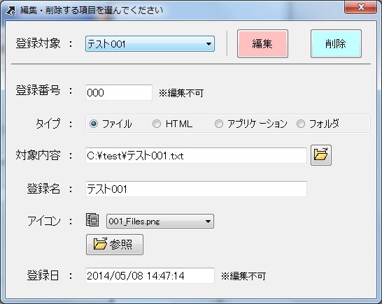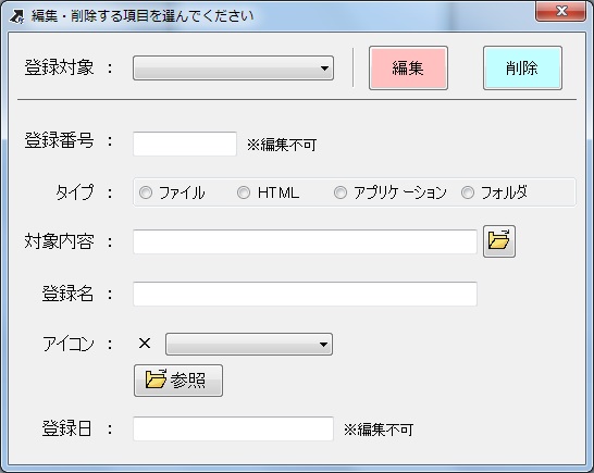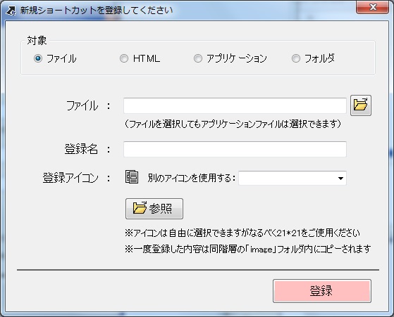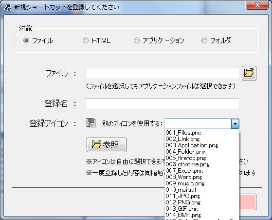 1)対象種類の選択(ファイル、HTML、アプリケーション、フォルダ)