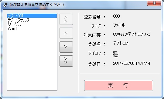 2)「一番上へ」、「上へ」、「下へ」、「一番下へ」の